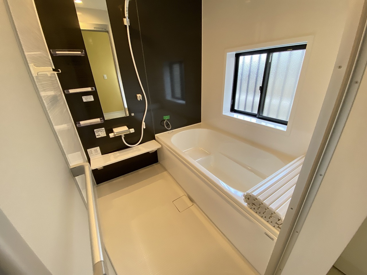 1坪タイプの広々した浴室には、ベンチタイプの浴槽なので